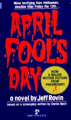 Jeff Rovin’s April Fool’s Day is an adaptation of the 1986 slasher pic that was loosely based on Agatha Christie’s Ten Little Indians/And Then There Were None. But while Christie was a master of characterization and suspense, April Fool’s Day —the book—just doesn’t compare, not to Christie’s book nor the ’86 film, starring Scream Queen Amy Steele and many other young B-movie actors from that era.